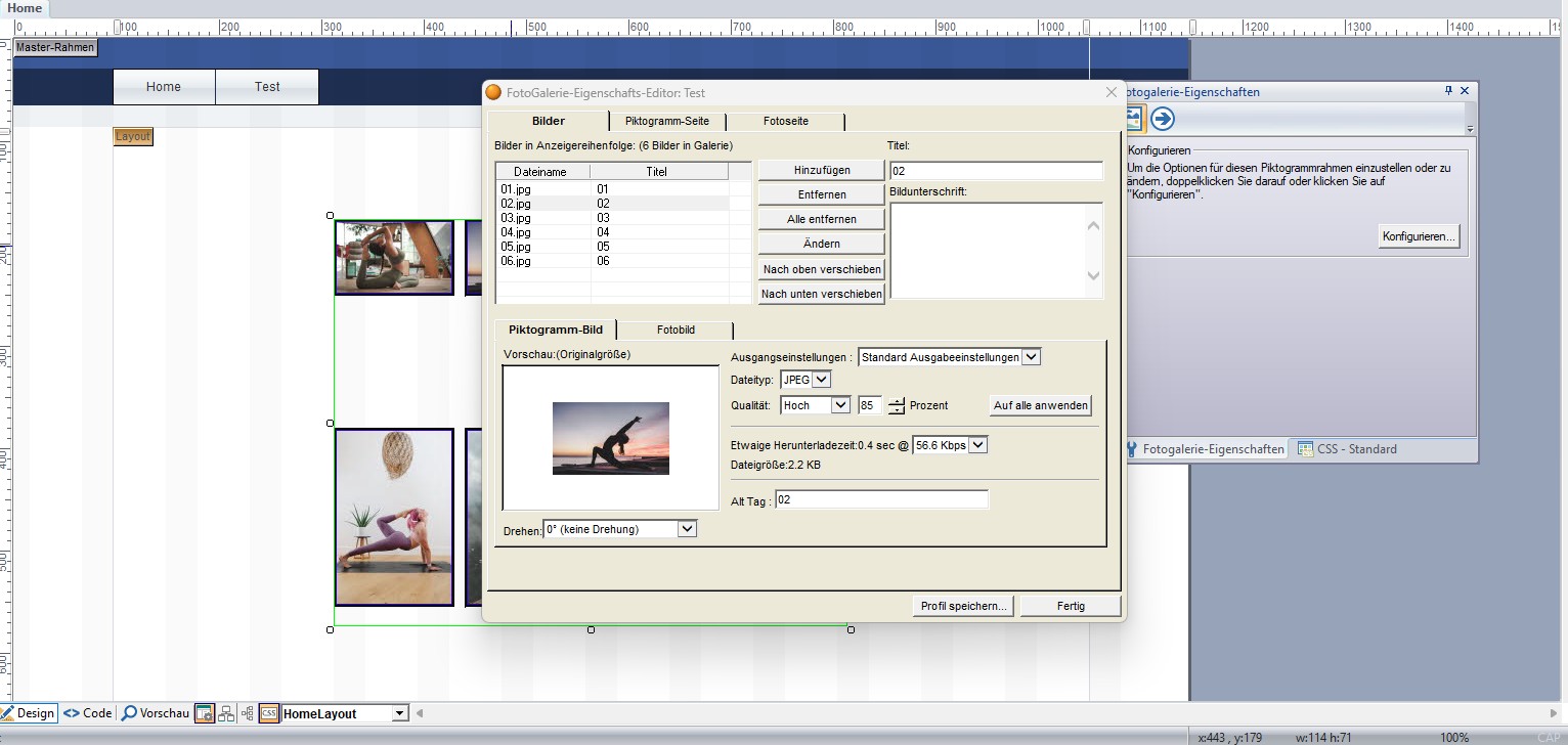 Bei dem Problem mit den Fotos geht es darum das ich nach dem Veröffentlichen (Lokal) die Fotos nach anclicken aus den Piktogrammen sehr groß angezeigt bekomme. Um das Bild vollständig zu sehen muss ich dann mit der Bildlaufleiste nach rechts und unten. Ich meine das war vorher nicht so und in der Online Veröffentlichung des Projekts im www ist das auch noch passend.