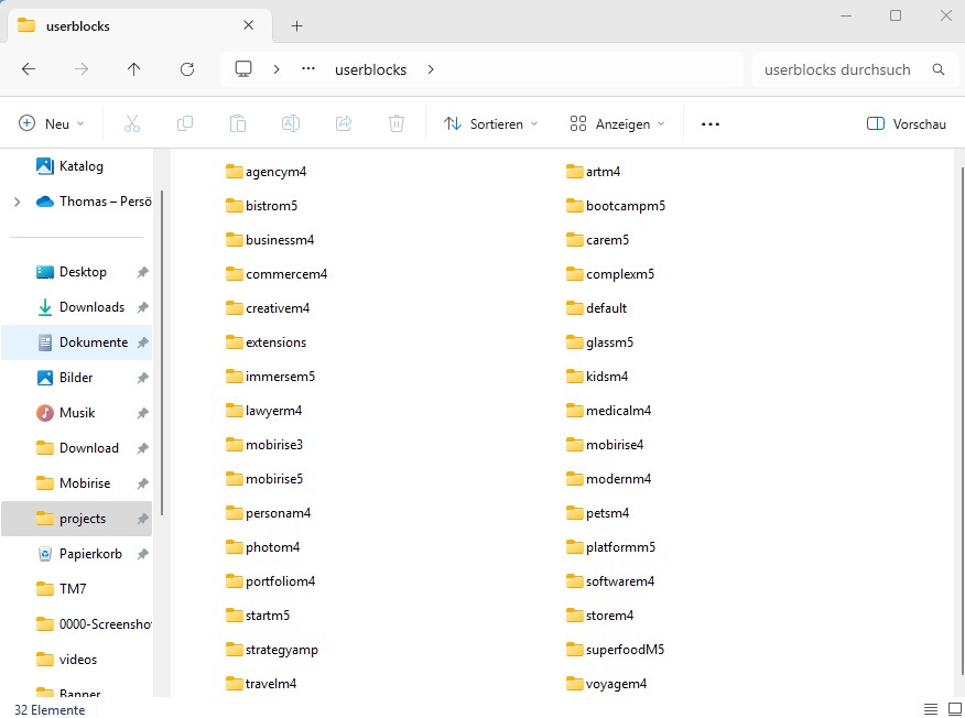 Dennoch habe ich etwa 40 bis 50 Benutzerblöcke alleine im Standard-Thema "Mobirise5" und einige Hundert in allen Themen, die ich seit ca. 6 Jahren gespeichert habe, über Dutzende von Versionen hinweg, und ich habe nie etwas verloren.