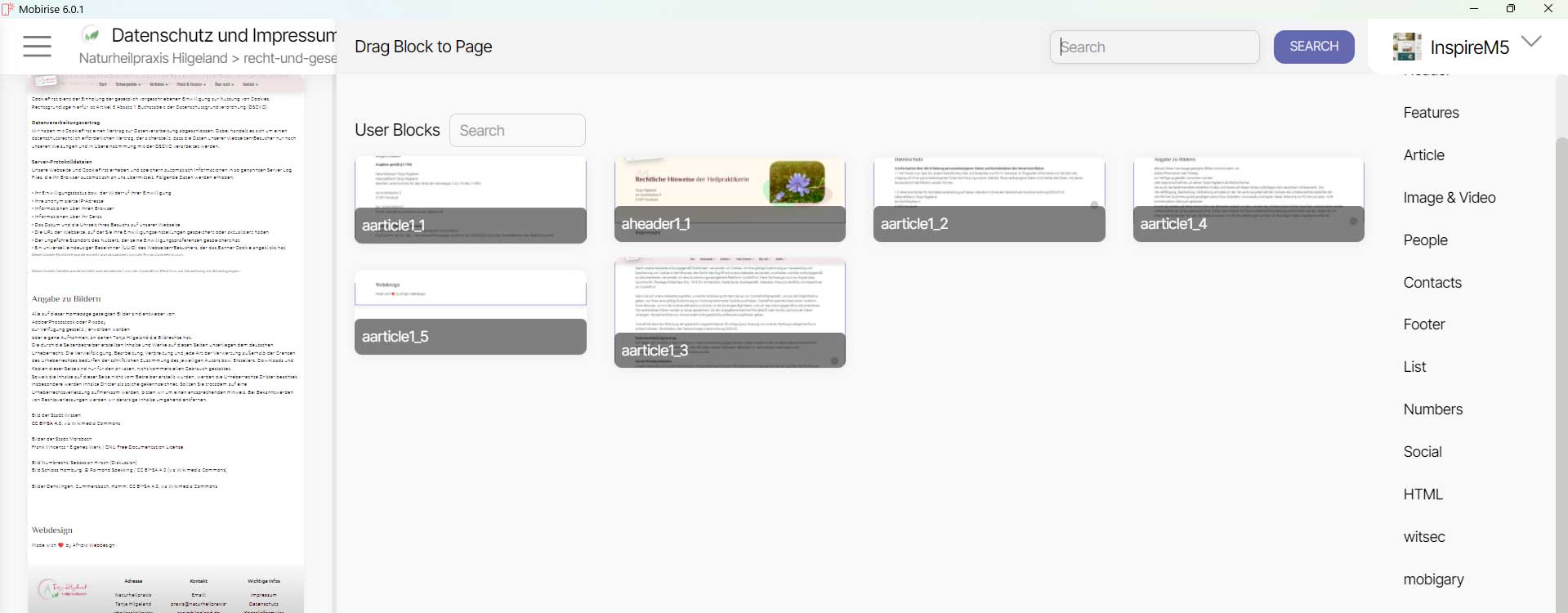 Du solltest zunächst ein neues Projekt mit dem gleichen Thema "InspireM5" öffnen, um zu überprüfen, welche Blöcke dort verfügbar sind und nicht im anderen Thema "Mobirise5" vergleichen.