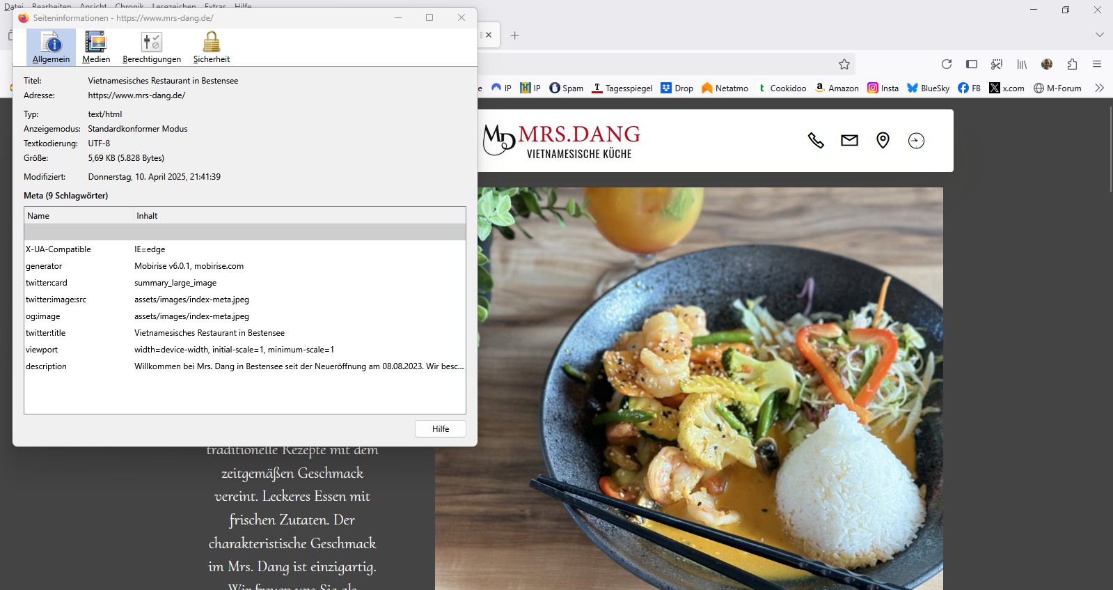Ich habe die Restaurantseite www.mrs-dang.de erstellt und hatte bis jetzt keine Herausforderung.