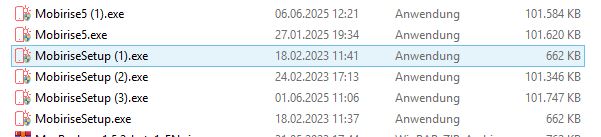 Du solltest Dir auch angewöhnen, jede Installationsdatei von Mobirise zu sichern. Ich lege mir immer, für jede neue Version, ein Verzeichnis mit einem eindeutigen Namen und mit dem Erscheinungsdatum der Version an, wie z.B.: