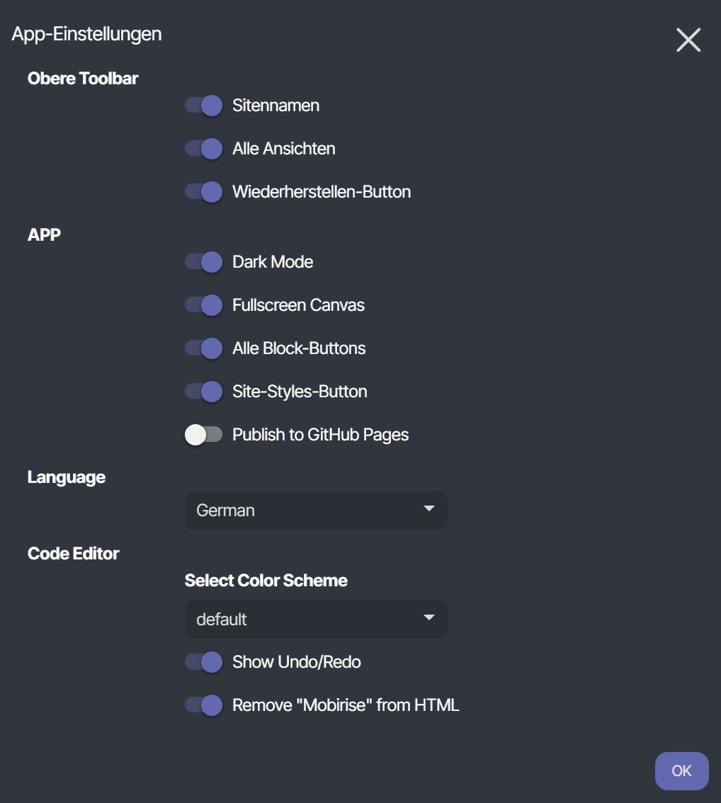 Meine Frage Gibt e ein Mobirise komplett auf deutsch