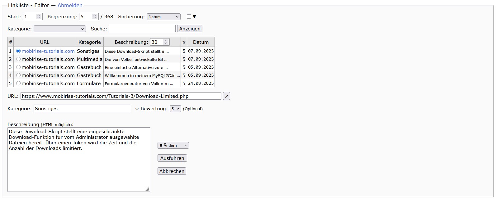 Hab für mich eine Linkliste gebastelt, wo sich die Leute eintragen können, die Scripte von mir verwenden