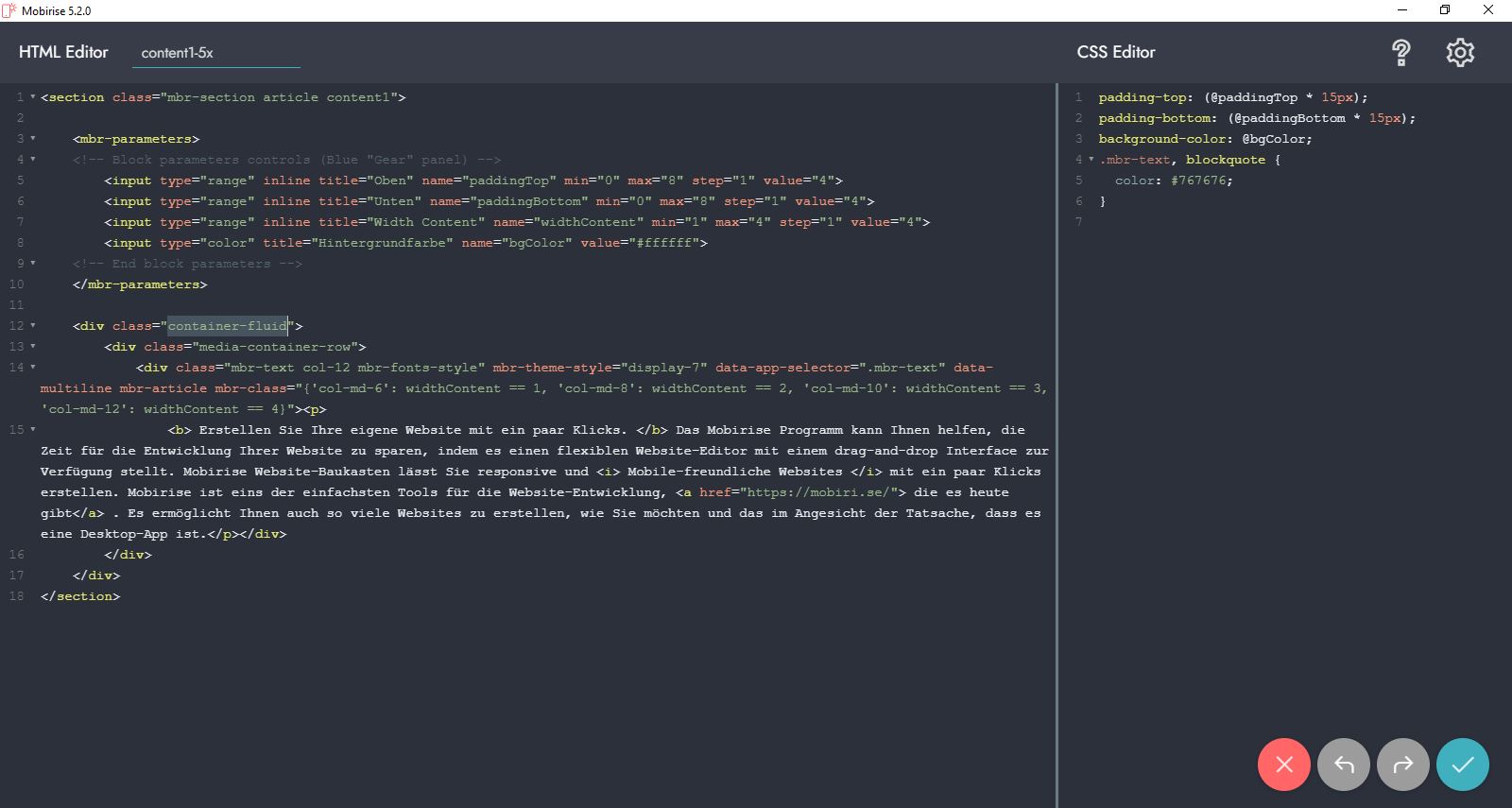 Je mehr man sich mit CSS im Allgemeinen und eben auch mit den in Mobirise verwendeten "Bootstrap CSS Klassen" beschäftigt, desto klarer wird einem wie Mobirise funktioniert.