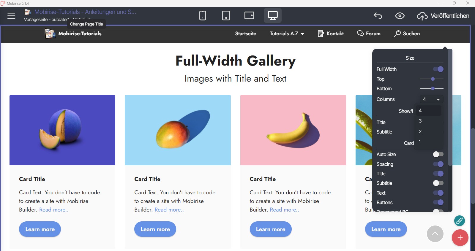 </select>Die Toolbox, also die "Block Parameter", lässt sich bei Mobirise immer ändern - ebenso wie auch die "Site Parameter", wie meine Beispielseite hier zeigt: