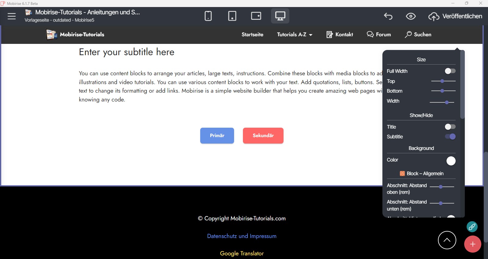zusätzliche Schrift mit deren Standard-Größe hinzufüge, was Mobirise ja nun in seinen letzten Updates auch abgeguckt hat.