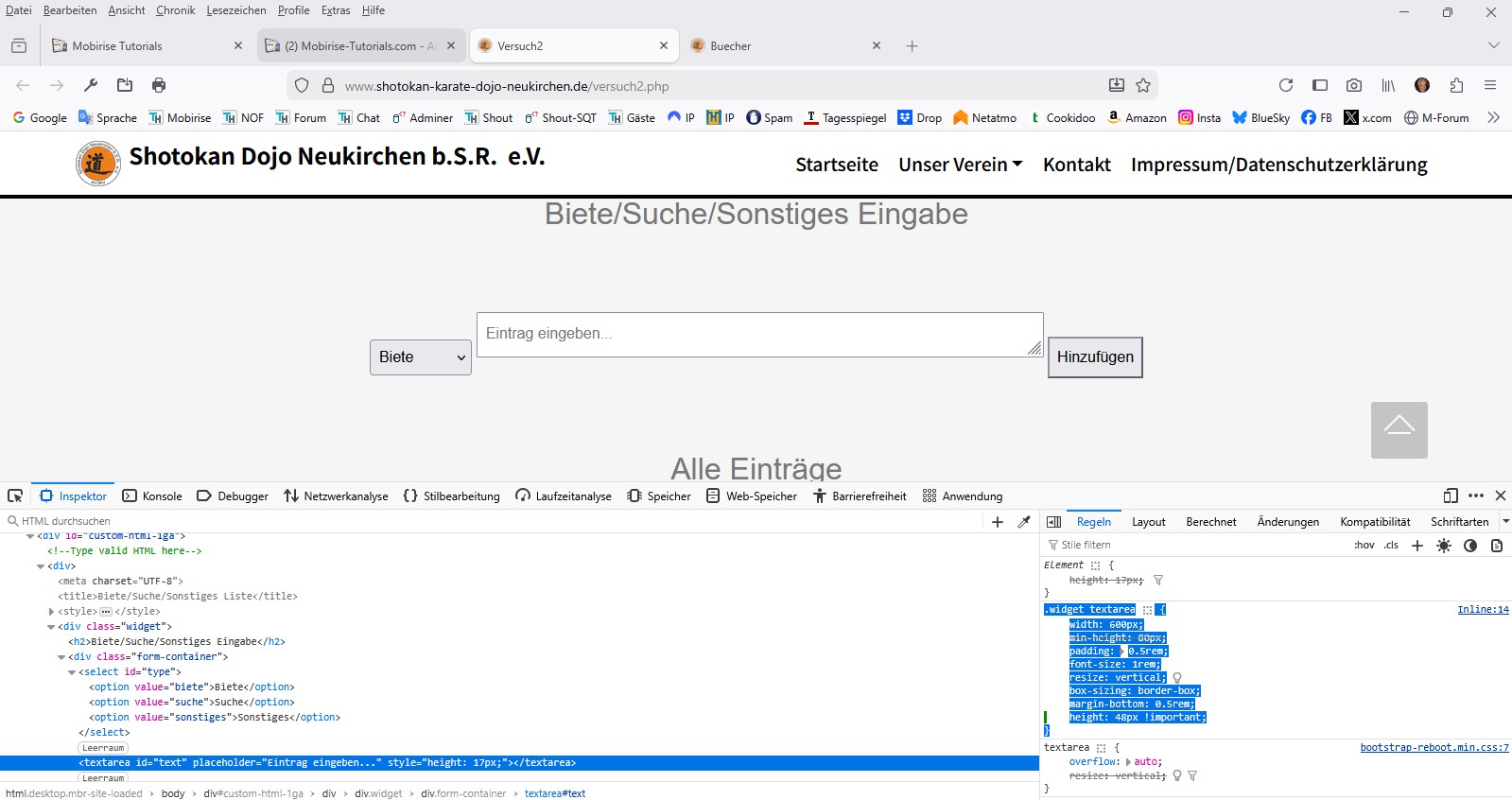 wollte in den Mitgliederbereich eine kleine Tauschbörse einbauen. Das Script hab ich mit KI erstellen lassen. Eigentlich funktioniert das auch ganz gut. Allerdings schaffe ich es nicht die Ausgabefelder und auch die Antwortfelder auf die nur notwendige Höhe zu reduzieren. Die sind beide viel zu hoch.