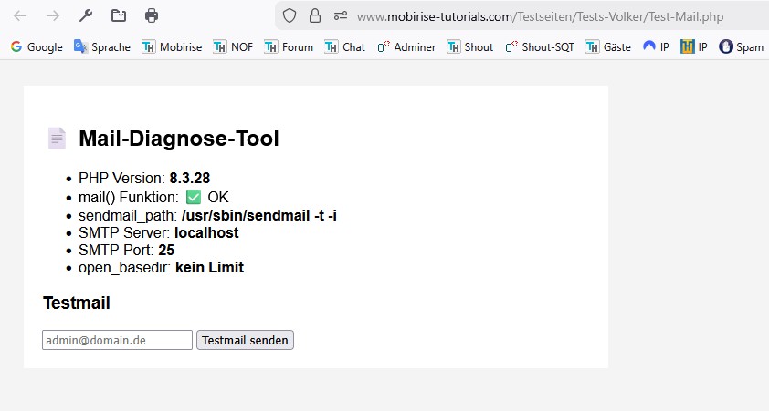 - Unter Linux nutzt `mail()` häufig **sendmail/postfix** lokal; da ist die „SMTP/Port“-Anzeige oft irreführend.