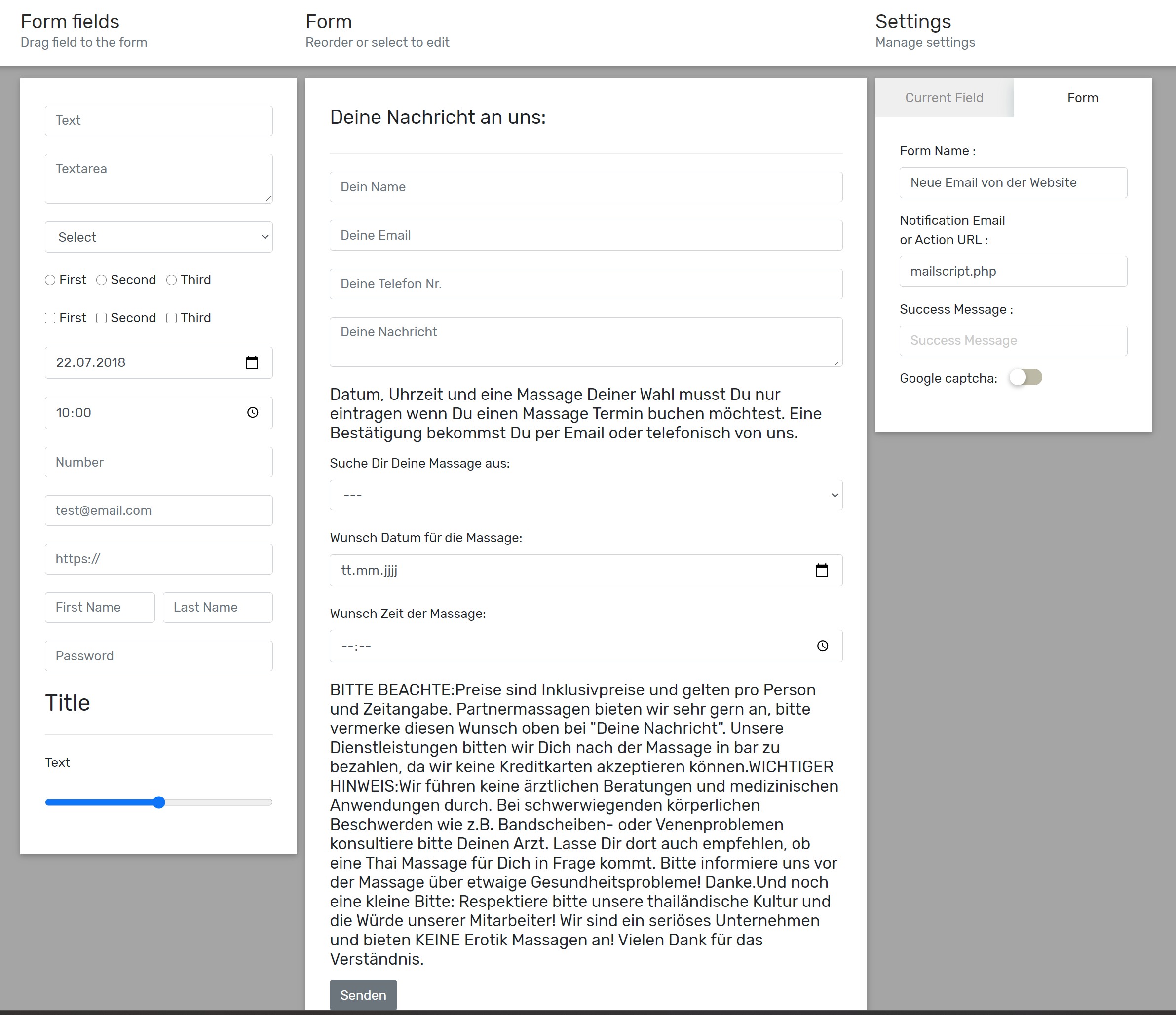 Im Anhang zum Thema das verwendete PHP Script und Screenshot aus dem Mobirise Formular Builder zur Info.