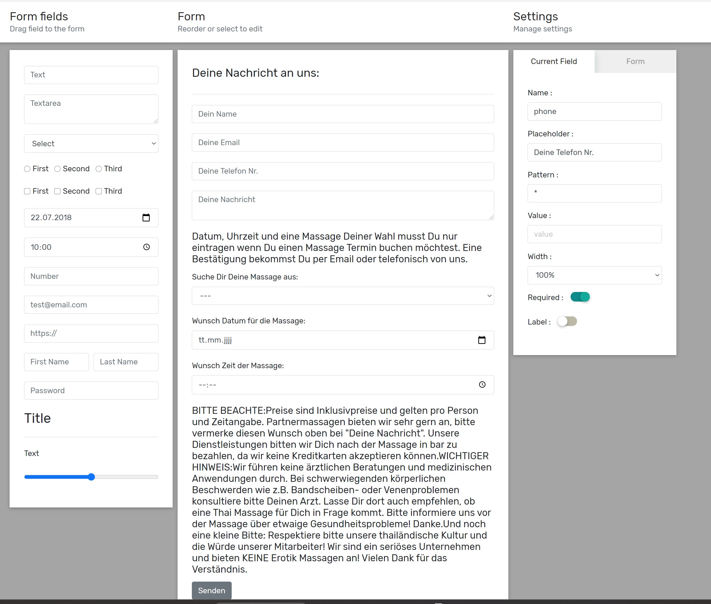Das kannst du im Formbuilder korrigieren. Da einfach den typ mal testweise auf text stellen, dann probieren. Wenn tel, dann werden zahlen erwartet.futurelike hat geschrieben: Mo 29. Dez 2025, 12:22 Gut, die ersten beiden ToDos habe ich erledigt. Hat aber noch keine Lösung gebracht.