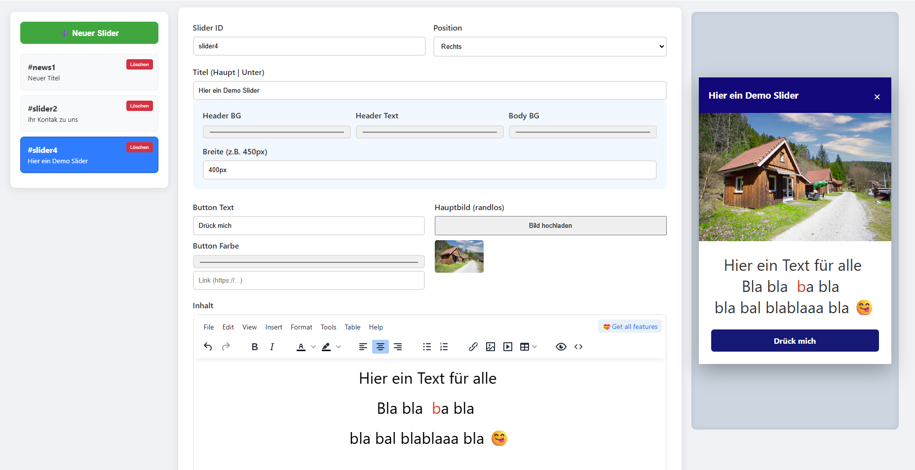 Hier mal ein Screenshot des neuen Admin Panels - jetzt auch mit Live Vorschau der Slider :D