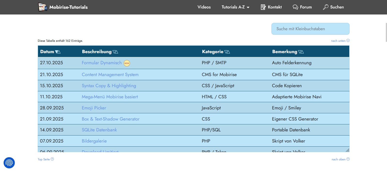 Ich hatte die mal erstellt, derweil es keine vernünftige Tabelle für "Mobirise5" gibt.