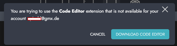 Weiterhin dürftest Du nach kurzer Zeit (maximal einigen Tagen) keinerlei kostenpflichtige Erweiterungen, also auch nicht den "Code Editor" mehr für neue Blöcke verwenden können, solange Du keine Lizenz erworben hast (was Du Abo nennst).