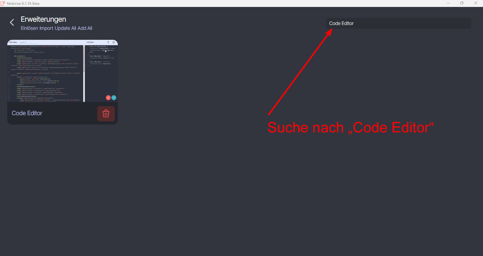 Meinen bisherigen erworbenen Code-Editor von "Mobirise" kann ich natürlich vergessen !