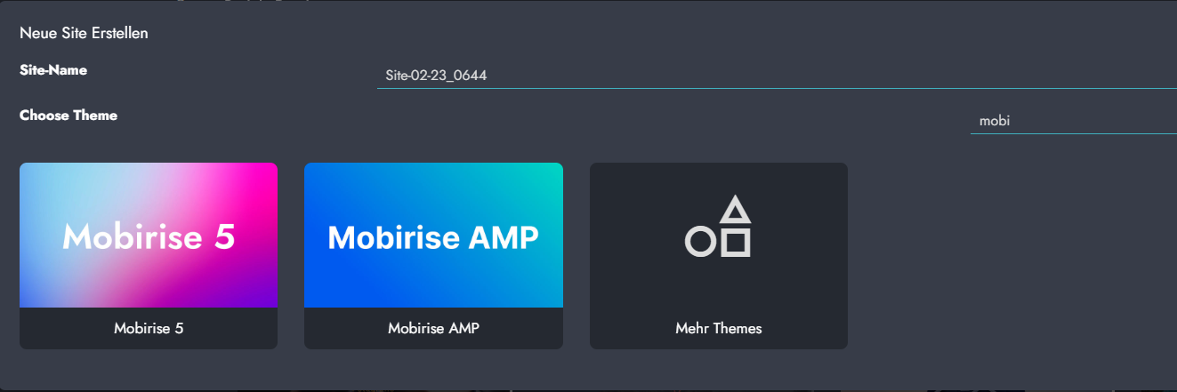 - neue Seite erstellen, habe ich nur Mobirise5 zur Auswahl