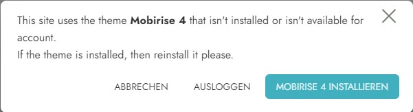 Bei mir sieht das ähnlich aus. Mobirise4 Theme ist nicht mehr vorhanden. Wenn ich mich auslogge, bekomme ich die Meldung, dass ich Mobirise4 verwende, das Tehme aber nicht installiert ist.