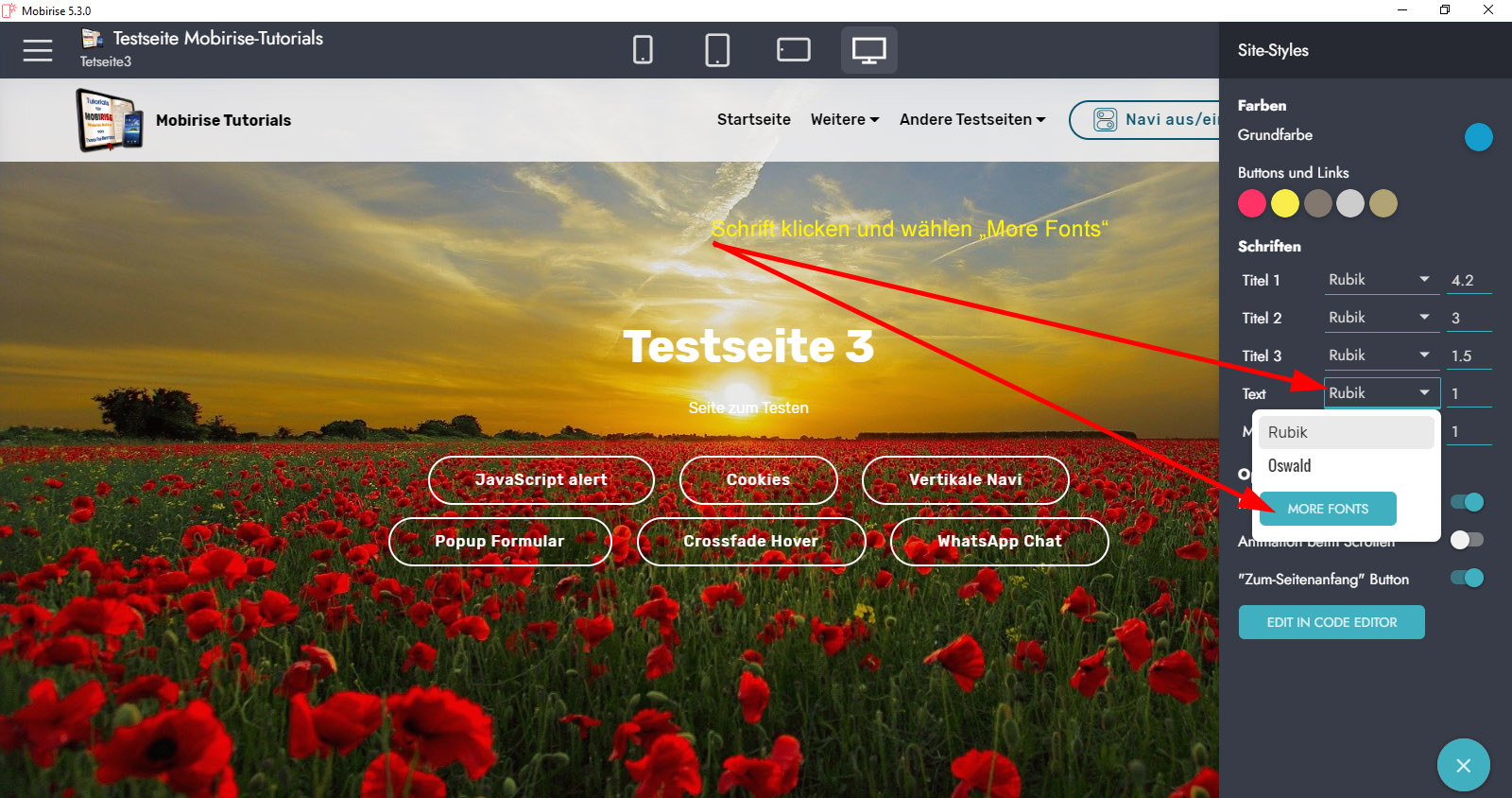 Mobirise hat eine Option die Schriften vom PC zu laden und auf den Server zu kopieren.
