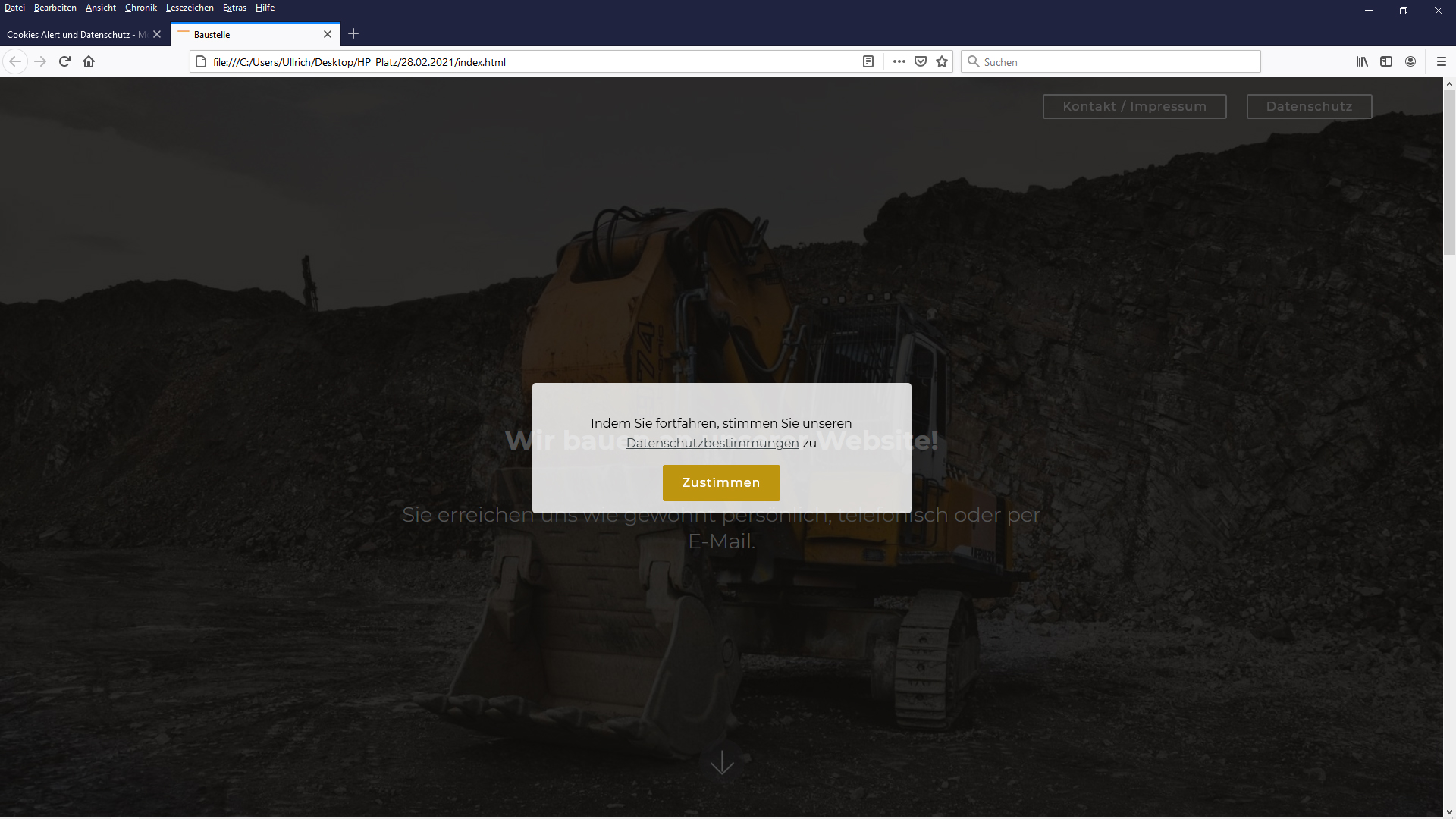 Impressum und Datenschutzhinweis-Seite für
