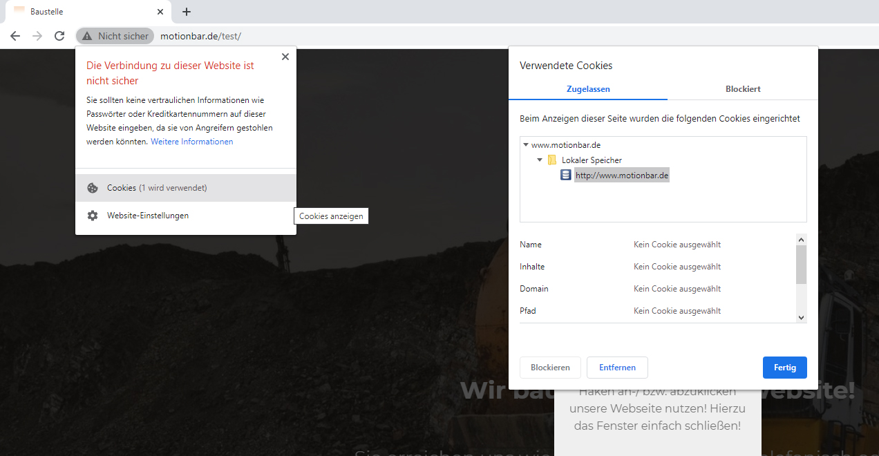 Die Software von Mobirise selbst setzt keinerlei Cookies.