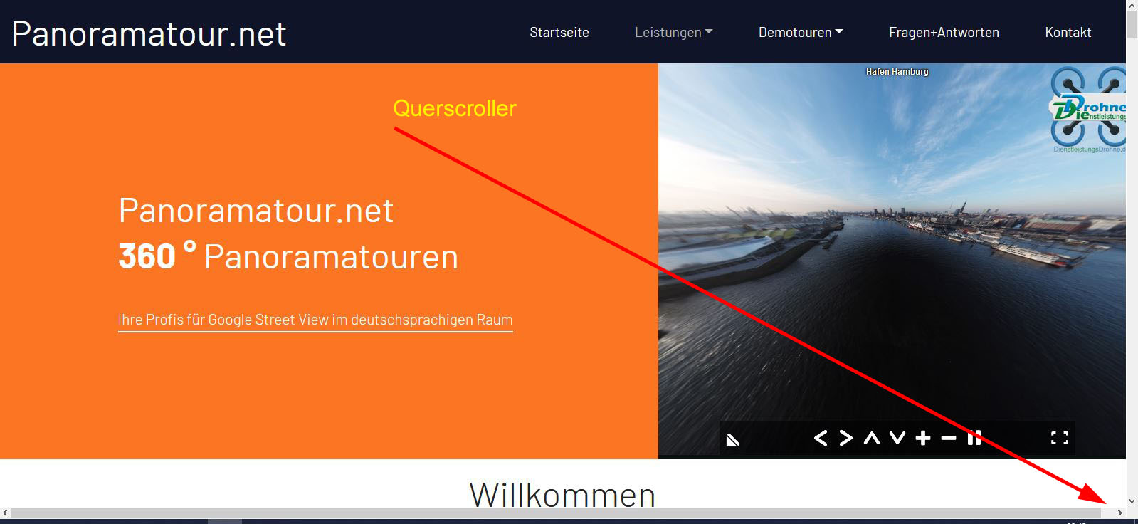 Jetzt ist der "Cookie Alert" OK aber nur noch oben das Panorama-Dingin zu sehen. Ein Scrollen ist jetzt gar nicht mehr möglich (man befindet sich in der 360° Anwendung und bewegt nur diese) - die Seite steht fest und ist nicht mehr am Handy zu betrachten.