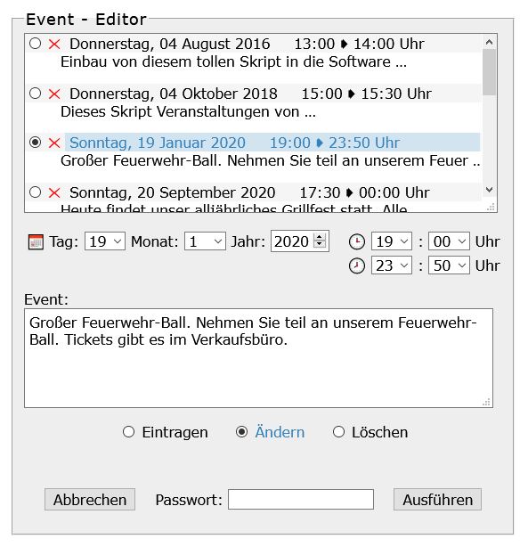 von unserem Werner da mehr anbieten. Dort kann man Termine in einen Editor eintragen, ändern und löschen. Abgelaufene Termine werden automatisch nicht mehr angezeigt. Das alles direkt online.