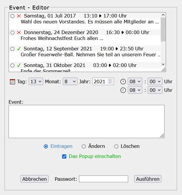 dynamische Iframes zu testen. Das hatte ich bei der Anwendung "Nachrichten" mal beispielhaft gemacht (aber meines Wissens überhaupt noch nie bei den "Events"):