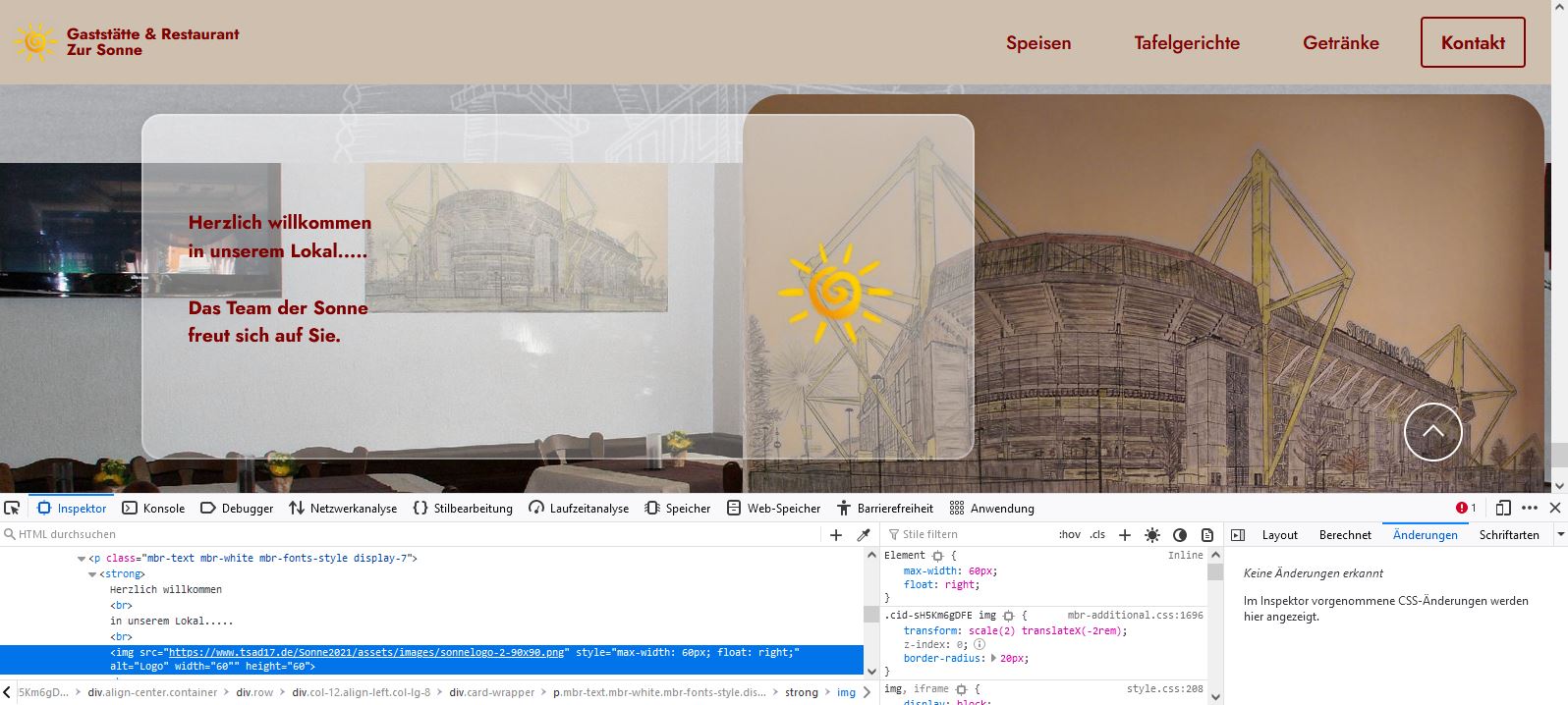 Ich würde gerne das Sonnenlogo aus dem Menü auch in den Block am Ende der Seite einfügen.