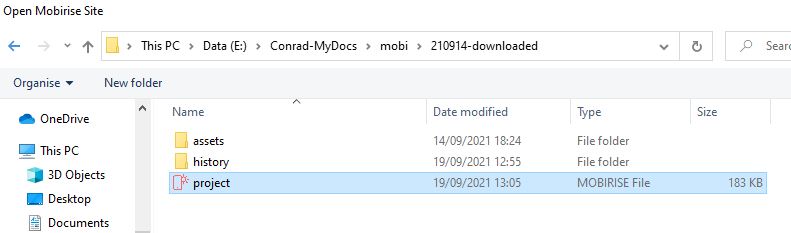 I lost some info after my PC died, including my latest mobirise website (I had out of date versions). Luckily it was stored on github, so I downloaded it and put it into a folder. However when I open 'project' on that folder, mobirise still opens my out-of-date version, and not the version in that folder. I dont understand how mobirise accesses files, seems different to normal file organisation. Help