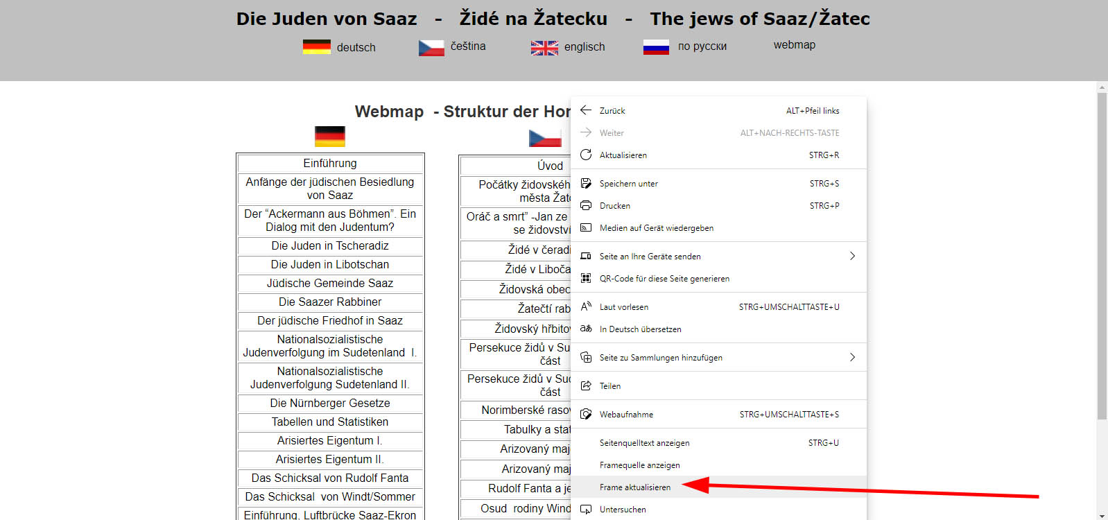 Bei Deinen geframten Seiten würdest Du im Browser "Edge" mit der rechten Maustaste auf diese geframte Seite klicken und dann im Kontextmenü wählen > "Frame aktualisieren":
