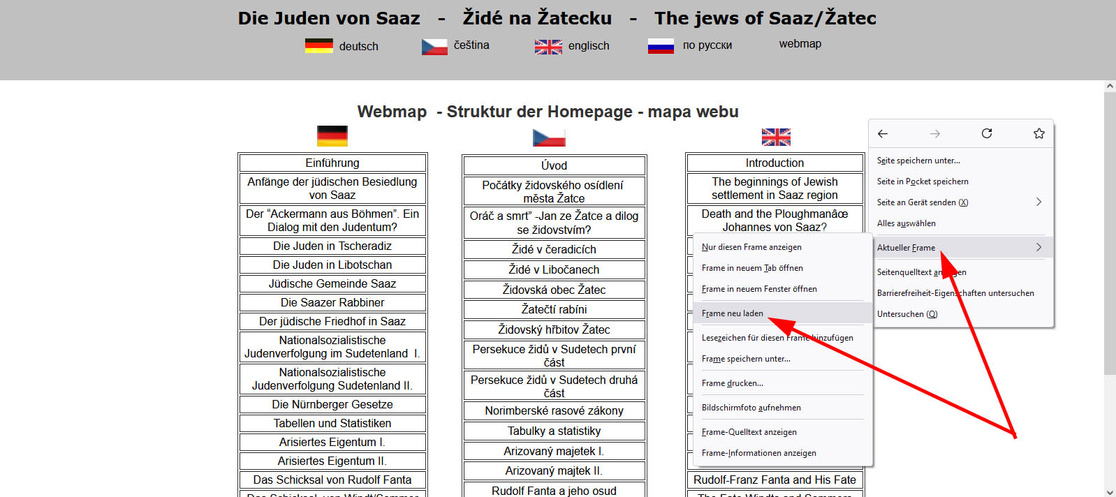 ... oder z.B. im Browser "Firefox" mit der rechten Maustaste auf diese geframte Seite klicken und dann im Kontextmenü wählen > "Aktueller Frame" und dann > "Frame neu laden":