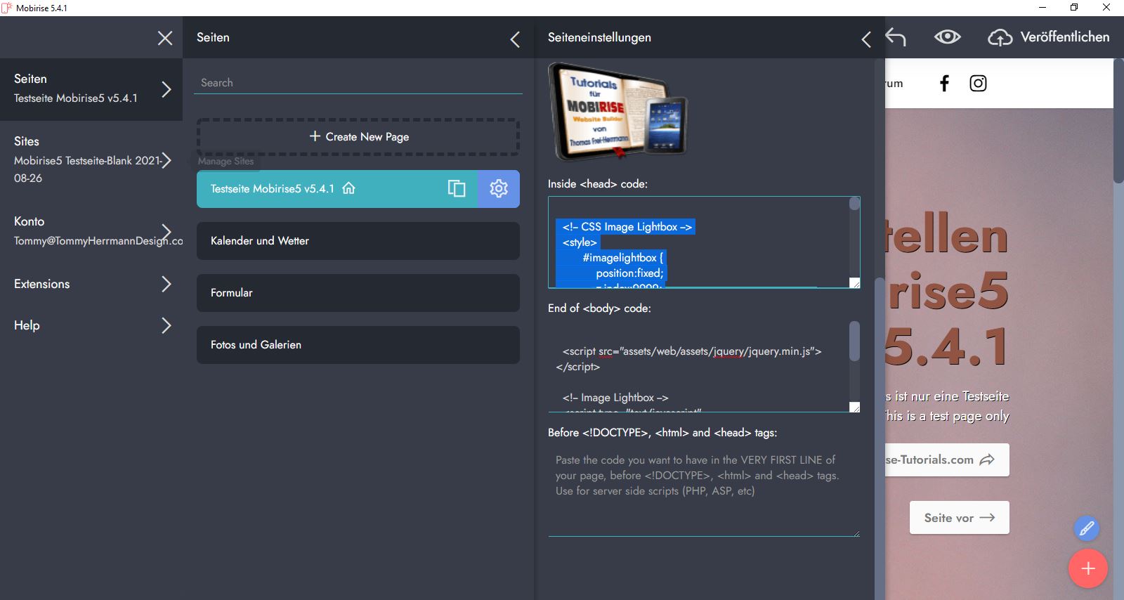 Ich habe auch in Mobirise z.B. die ganz alte und originale "Lytebox" (noch von Markus F. Hay) eingebaut: