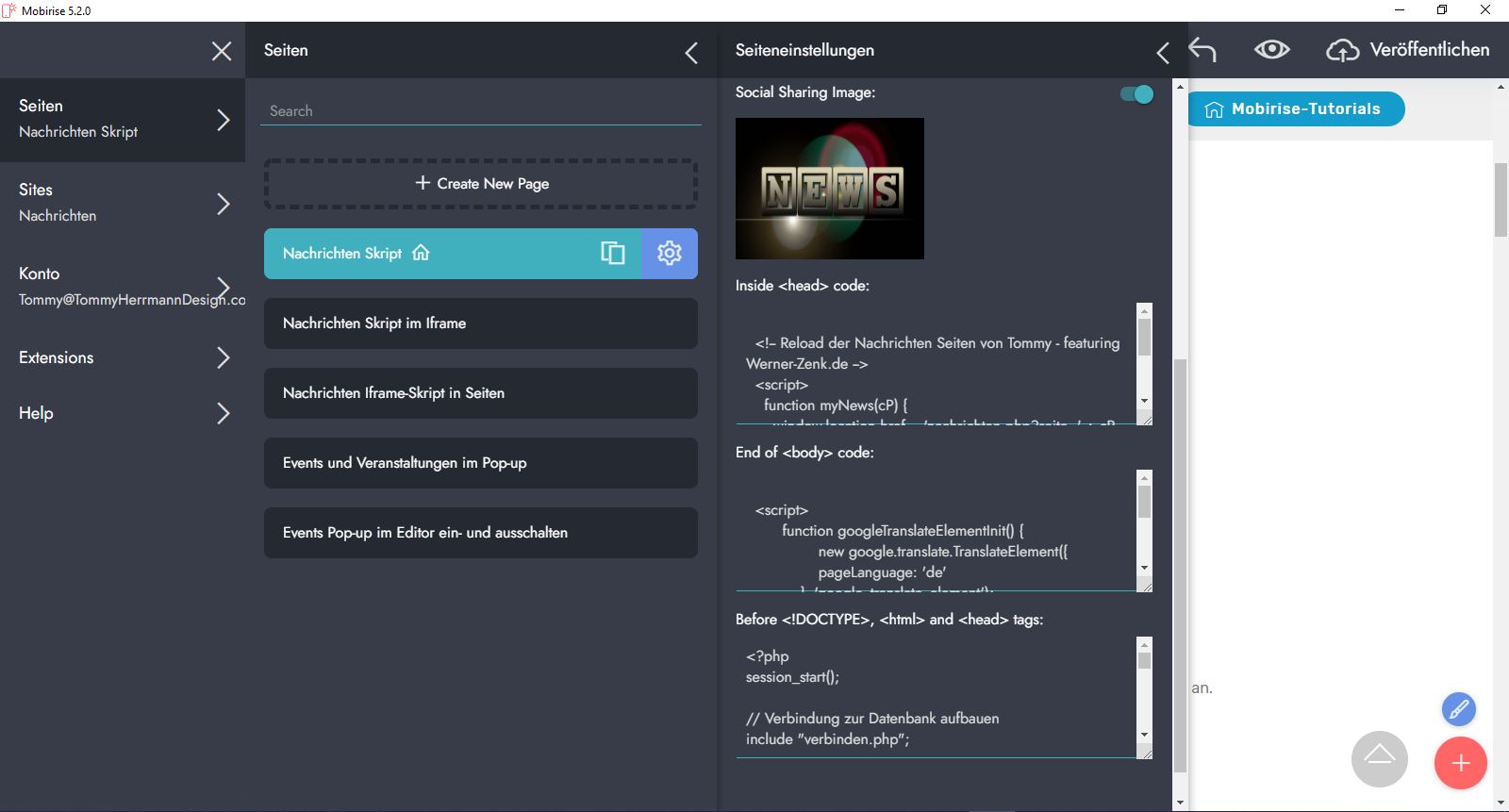 Externe Skripte in Mobirise einbauen