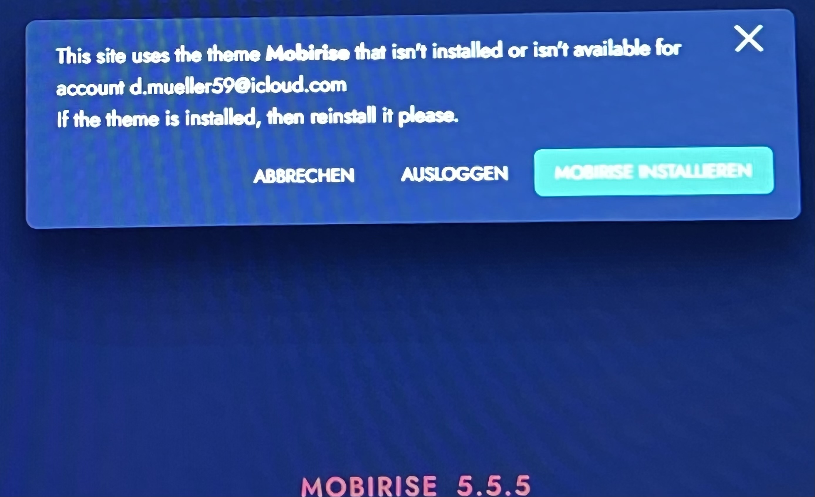 Sonst müsstest Du gleich mal an den Support von Mobirise schreiben und sende den Screenshot dann auch mit: