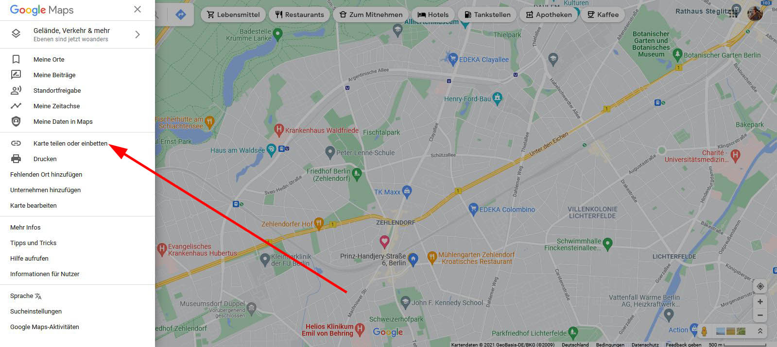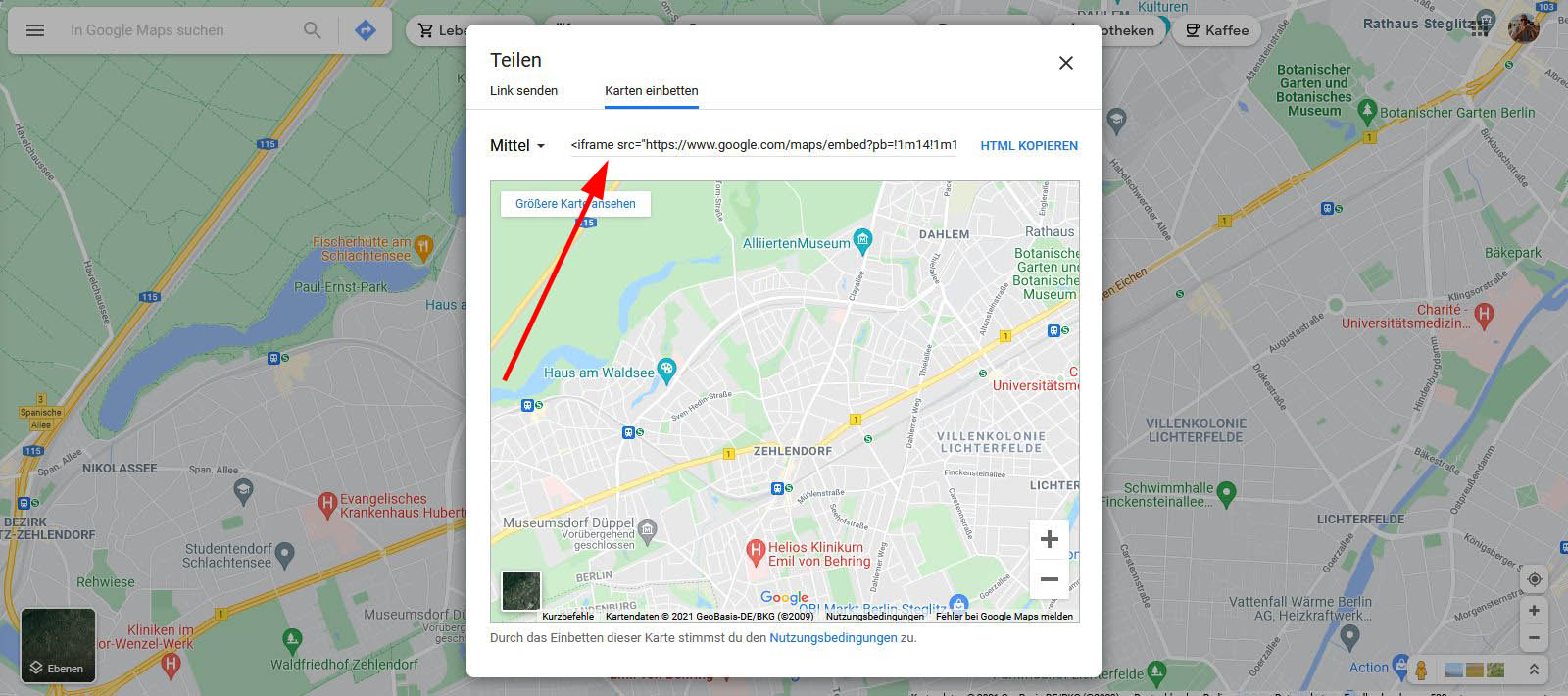 Karte teilen oder einbetten"