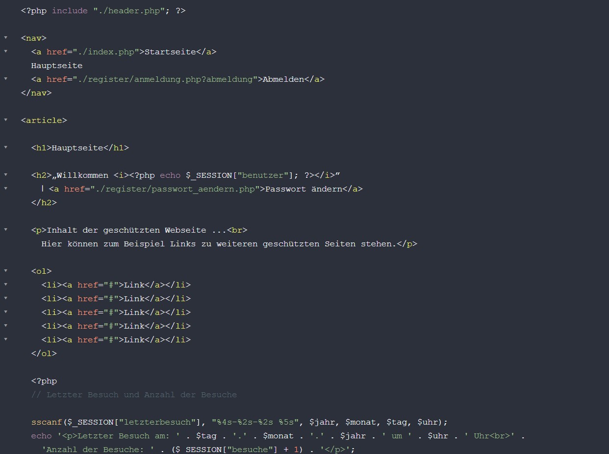Damit wäre dann die Seite "anmeldung.php" fertiggestellt.