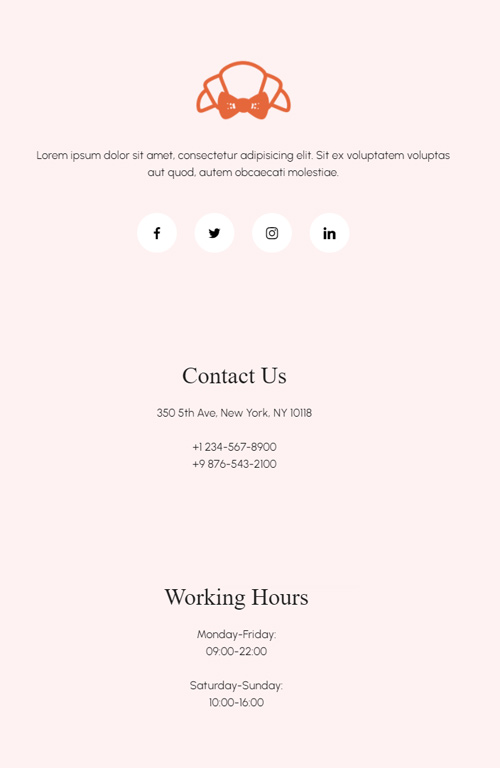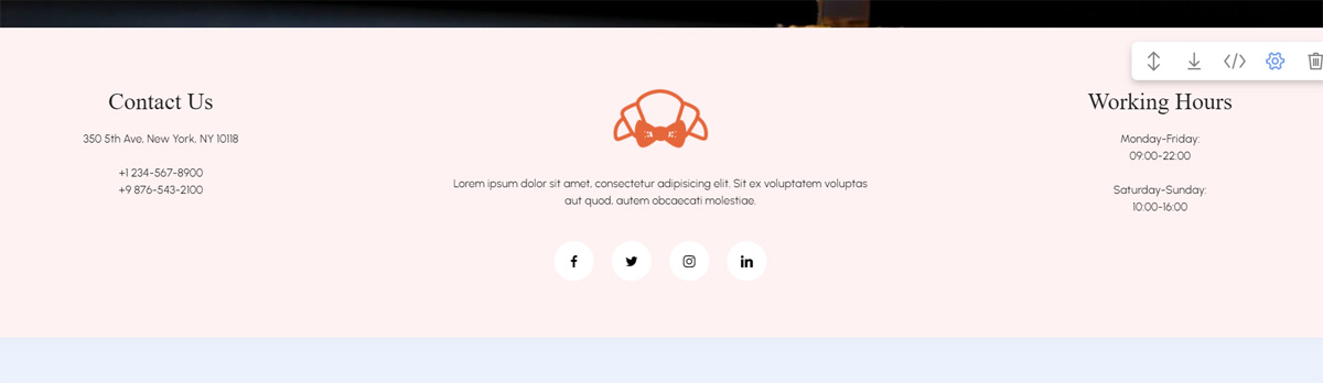Normal würde erst "Contact", dann Logobereich und dann "Working Hours" kommen.