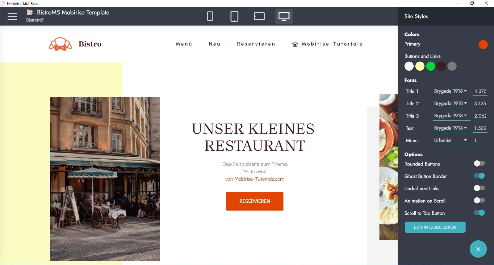 Du könntest also auch gleich in diesen Block in den "Code Editor" im Bereich "CSS Editor" schreiben: