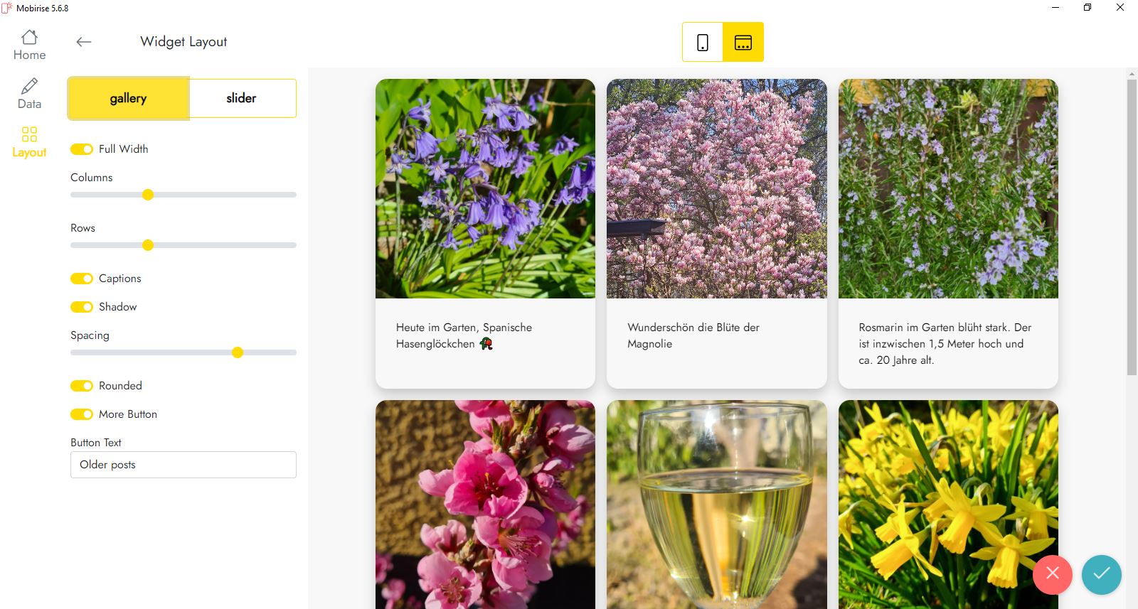 Man muss aufpassen, denn jede Einfügung erzeugt ein neues Widget auf seinem Konto, auch wenn diese gar nicht auf der Mobirise Seite dargestellt und verwendet wird.