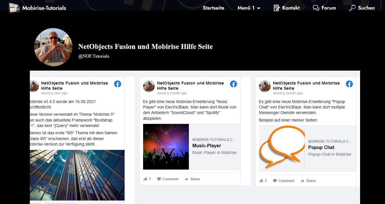 Die Verwendung und die Funktionen habe ich bereits mit dem Instagram Feed beschrieben. Die anderen Feeds sind ebenso aufgebaut. Im Moment sind diese Erweiterungen kostenlos, setzen aber eine Mobirise-Version ab v5.6.6 voraus.