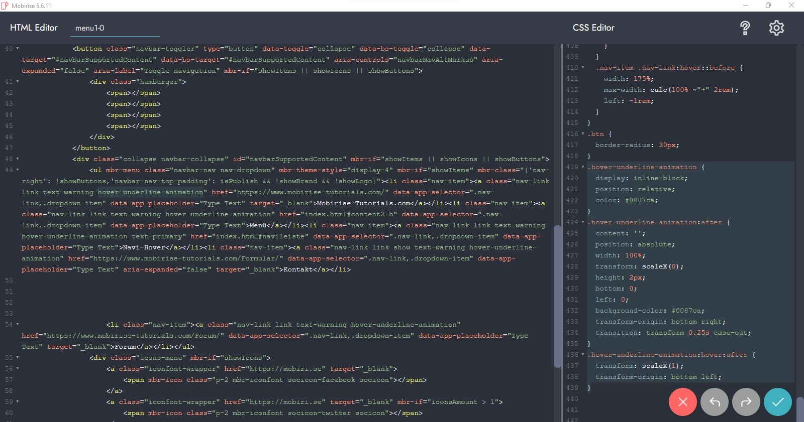 Diese CSS habe ich zusätzlich in denb Bereich "CSS Editor" vom "Code Editor" des Menüblocks kopiert: