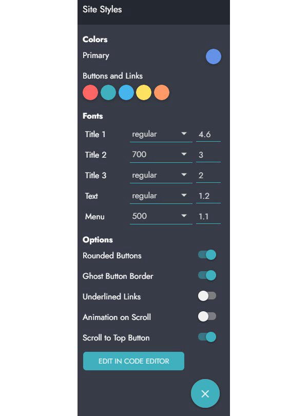 Du darfst dann also die ursprünglich verwendete Schrift "Jost" an keiner Stelle im globalen Style-Editor mehr wählen, damit der Link zu "Google Fonts" von Mobirise auch nicht mehr generiert wird:
