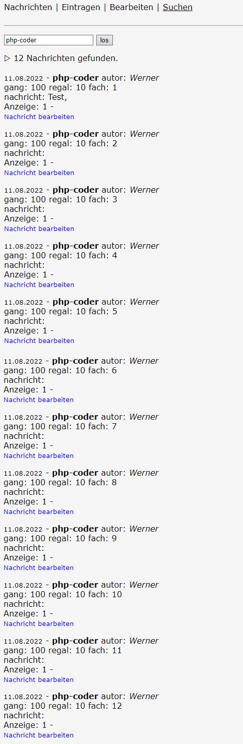 ' Nachricht: ' . $nachricht['nachricht'] . '</p>';