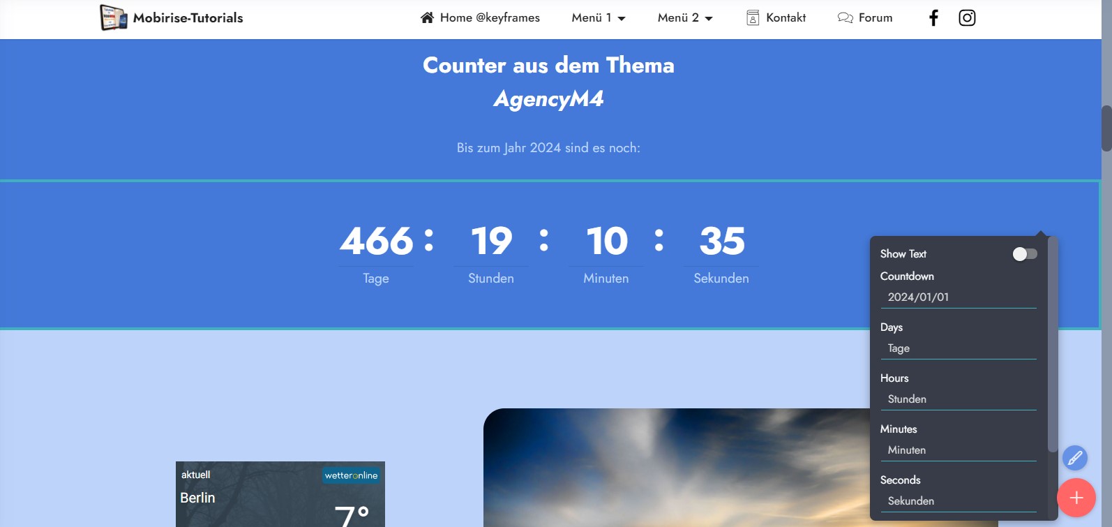 also der Counter (Zähler) aus dem Thema "AgencyM4" scheint einwandfrei im Thema "Mobirise5" zu funktionieren. Ich habe das jetzt noch nicht im Thema "SolarM5" getestet sondern nur im Standard Thema "Mobirise5".