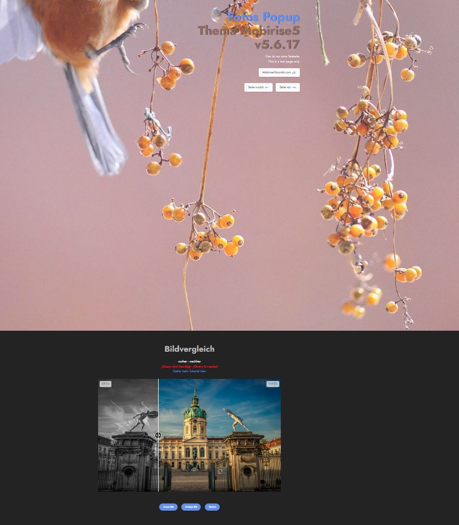 Das mit dem Bildvergleich werden sie wohl nicht korrigieren, denn da blockieren sie einfach jQuery, was es ja seit Bootstrap 5 nicht mehr geben soll. Ich denke aber, dass das gar nicht geht - weil unendlich viele alte Mobirise Seiten geradezu auf jQuery aufbauen - auch meine.