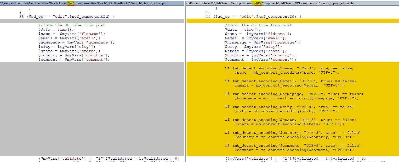 Hier mal als Bsp. das Diff von einer PHP Datei vom Gästebuch: