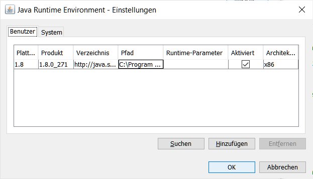 Wir sind auch bei "JAVA 8 Update 271" - gucke mal was Du da verwendest. Das siehst Du unter: