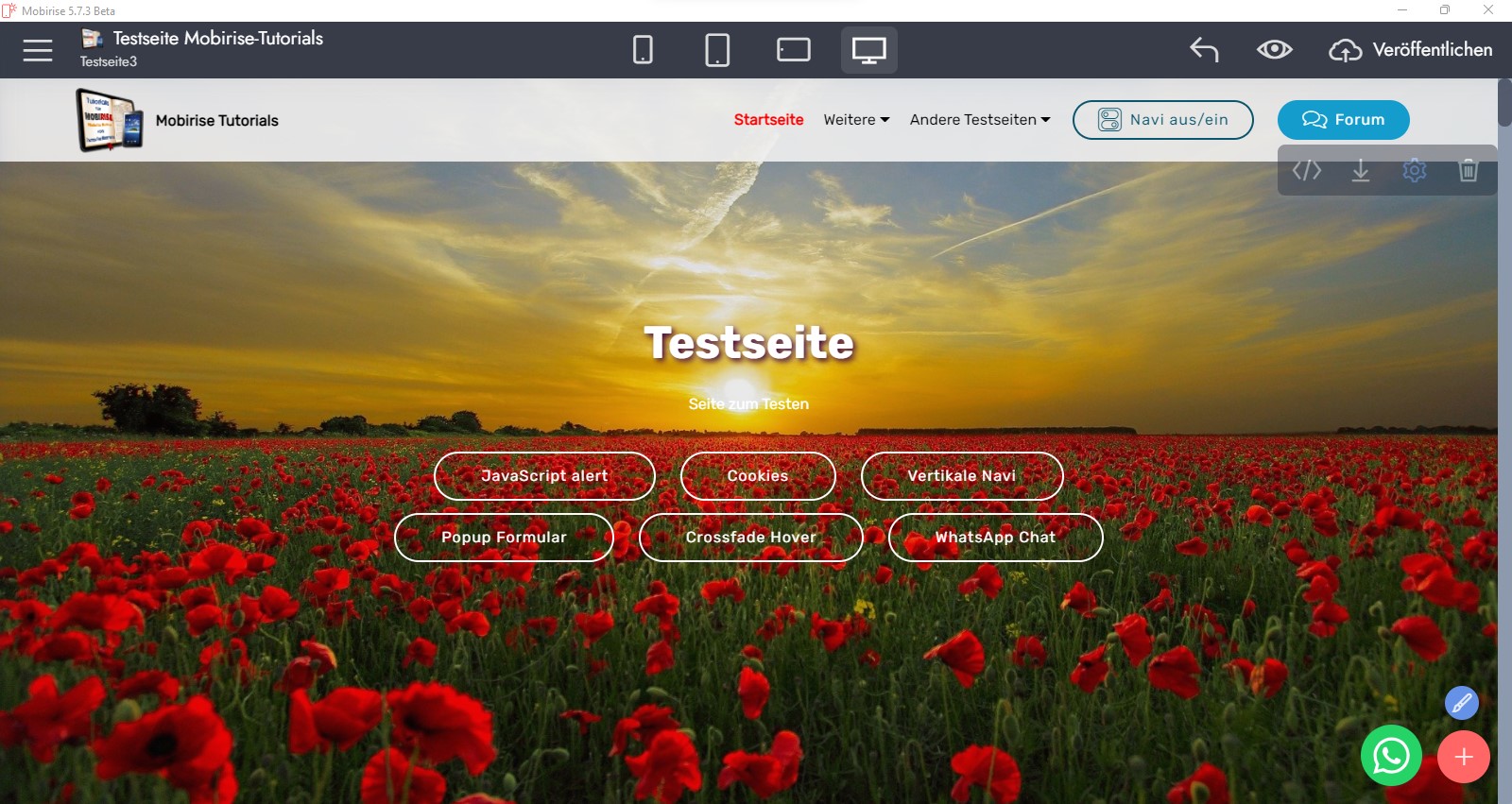 also - ganz genau wie gestern schon kurz erwähnt. Hier mal bei einem Standard-Thema "Mobirise4":