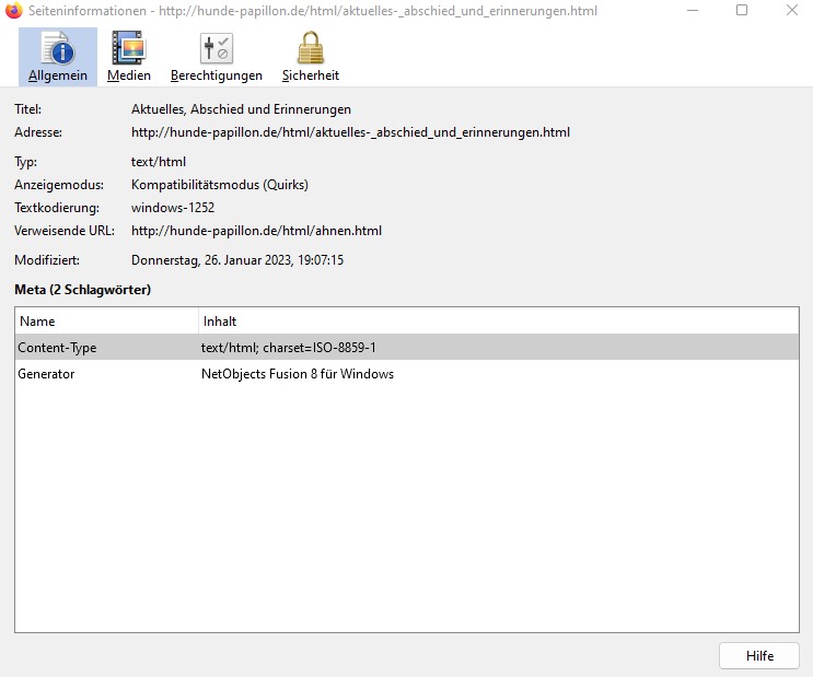 Das ist die gleiche Seite. Ich habe nur den Text der Seite von "Aktuelles" auf "Aktuelles, Abschied und Erinnerungen" geändert. Die Seite ist die gleiche geblieben, es ist nur das neue Foto dazugekommen. Wenn man weiter herunter scrollt, sieht man die gleichen alten Inhalte, die schon da sind, wenn man die Homepage hunde-papillon.de neu aufruft.