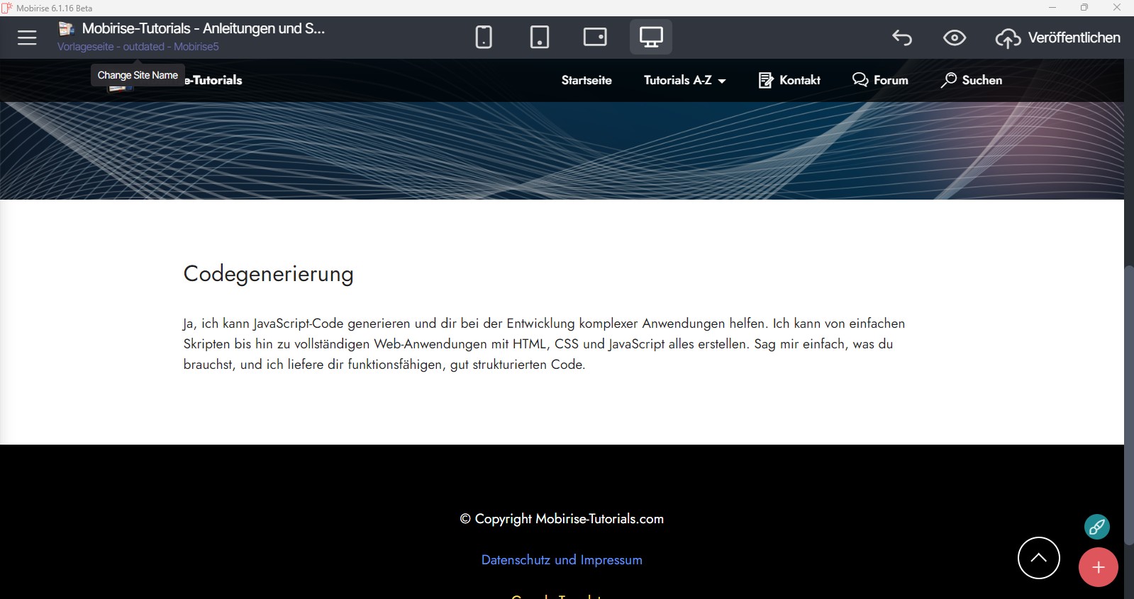 Tutorials zu der künstlichen Intelligenz "Mobirise AI"
