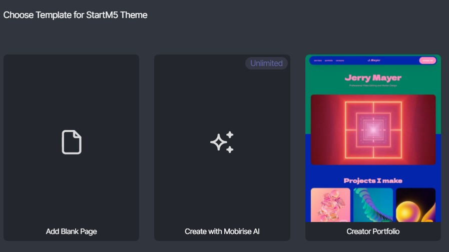 Mobirise AI direkt mit gewähltem Thema erstellen